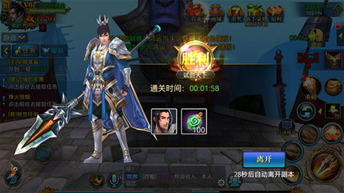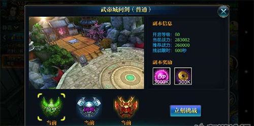 【丹种坪论武】副本每日挑战两次,通关即可获得大量银币,也可消耗金子快速扫荡。