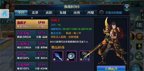 高品质装备的主要来源是国家BOSS挑战,有几率掉落蓝色、绿色乃至橙色装备;集齐四件同色装备可尝试合成更高品质。角色达到40级后即可参与BOSS争夺。