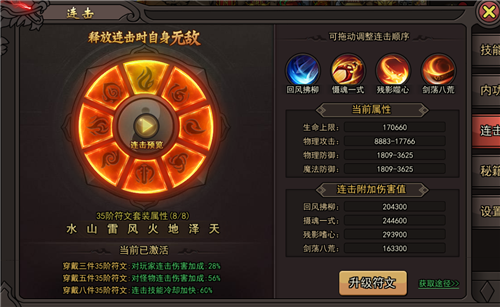 点击连击预览就能查看当前合击技能的动态效果展示,玩家可按照个人喜好调整连击的释放顺序。