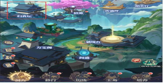 点击游戏界面最下方导航栏的洞天图标,在页面左侧中间位置就能看到归真坛,位置在招募功能旁边,点击就能进入对应的功能页面。