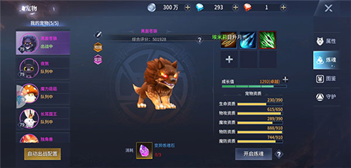 单次战斗中玩家最多可以携带四只不同的宠物,也可以把暂时不用的宠物放到背包里存放,具体怎么安排全看自身战斗需求。要注意捕捉到的宠物需要进行针对性培养,目前游戏里的宠物培养方式包含喂食、炼魂、装备饰品几种,操作都很简单易懂。