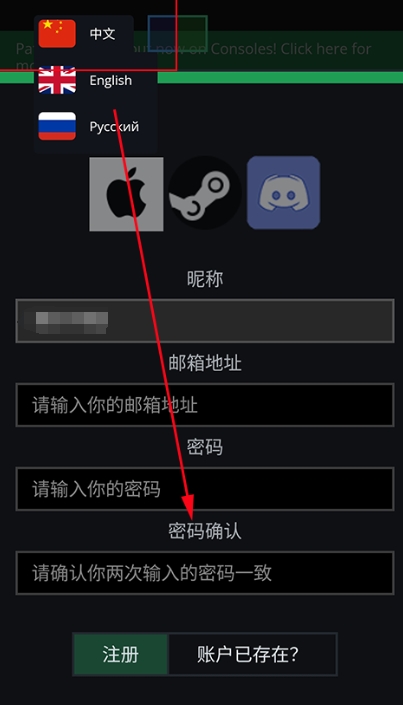 1、初次进入游戏的玩家,需要先注册并登录账号,没有账号的玩家可以点击下图所示位置注册账号;