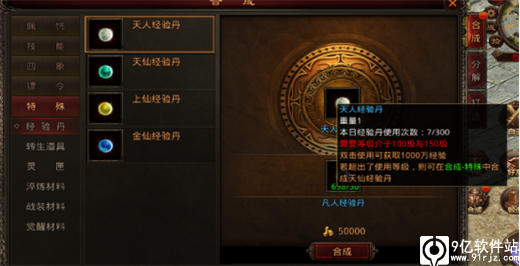 Ps:强化材料可以通过击杀盘古级以上的boss掉落,也可以通过参与活动获取,还可以在合成界面消耗对应材料合成所需的强化材料。