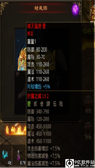 封魔图的每个部位,都可以为角色提供对应不同职业PK所需的增伤减伤属性,集齐套装还可以激活额外的套装效果。