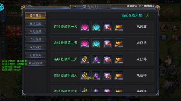 2、每次上线都能直接领取专属大礼包,里面都是实用道具,而且这个福利长期有效随时可以领;