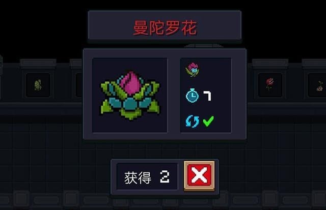 生命值9点,攻击伤害为3点,暴击率为50%,约2.2秒攻击一次。曼陀罗花精灵为散弹攻击方式,一次3发,暴击会使敌人中毒。