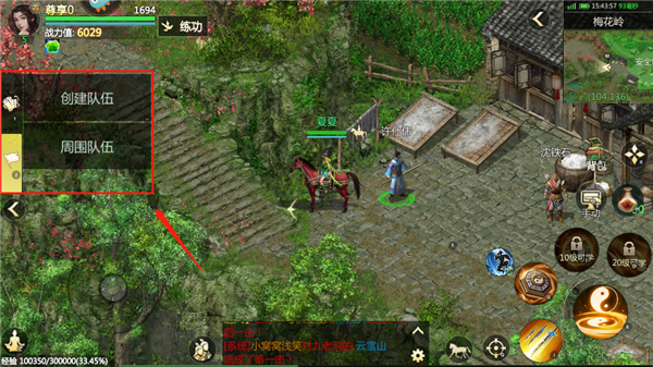1、进入游戏后,你可以操作自己的角色在江湖世界中自由探索;