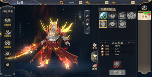 2、幻化:可以通过幻化改变仙兽形象。同时激活仙兽加成的属性可以叠加,激活越多加成的战力越多哦。