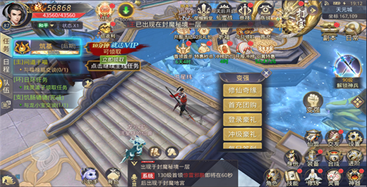 单人副本闯关,野外刷怪升级,捕获拉风坐骑,收服霸气神兵,锻造酷炫法器,养成绚丽仙羽,多维度成长路线能满足不同玩家的游玩需求,玩起来酣畅淋漓。