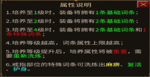1、当前版本没有设定特戒装备,麻痹、复活、护身类特殊效果全部可以通过词条洗练获得,所有玩家都有机会洗出对应效果;
