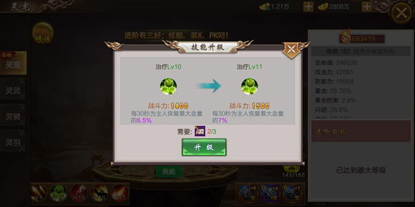 灵宠的技能可以使用灵宠技能升级书进行升级,升级后的技能效果会得到大幅提升。