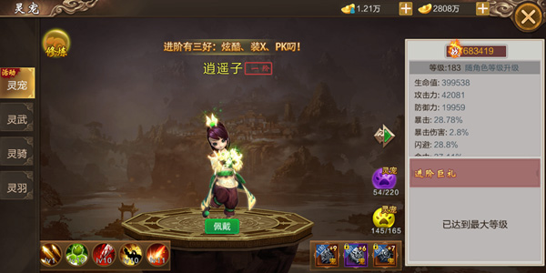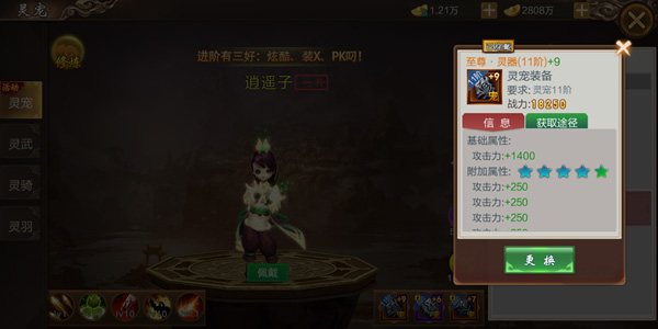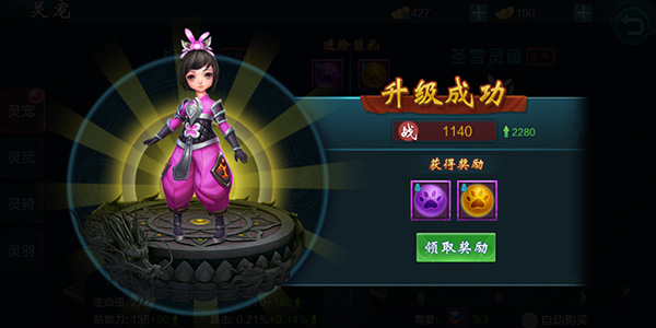4、灵宠进阶成功后,会解锁更酷炫的外观以及更强力的属性加成。