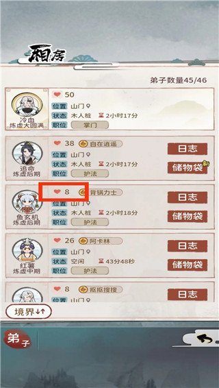 ⑤弟子渡劫失败会损失健康值和修为,两项数值归零后弟子会进入重伤状态,渡劫前后记得提前准备好对应的丹药;