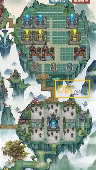 3,只有两个资源类建筑玲珑塔和仙武台,都属于低频点击建筑。而且玲珑塔和D区的丹狱距离很近,两者都是每天需要扫荡20次的建筑,操作可以连贯完成。