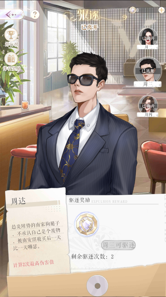 驱逐次数初始为2次,每天0:00重置,提升贵族等级可以获得更多驱逐次数。