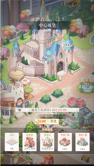 小主通过剧情关卡达成条件后可以升级中心城堡,解锁更多地块、建筑及等级上限;小镇营业过程中,可能会遇到一些随机事件,点击经过商业街的热气球、清理商业街道上的垃圾以及追逐小黑喵会有意想不到的收获哦~