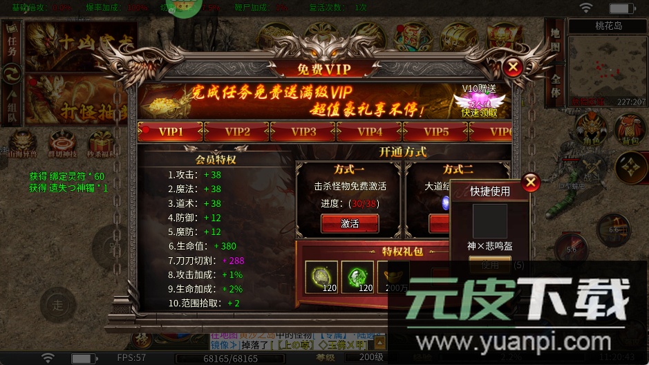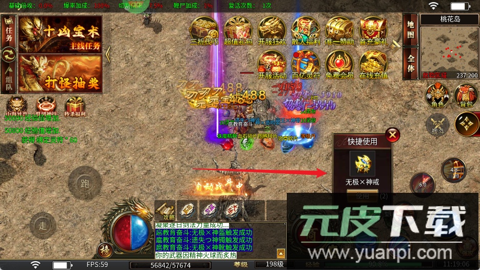 通过击杀怪物获得免费抽奖机会,真实充值、仙位称号、神级装备等所有道具均可免费获取;