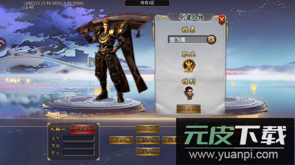 2.接着创建个人角色,当前版本仅开放战士职业供选择。