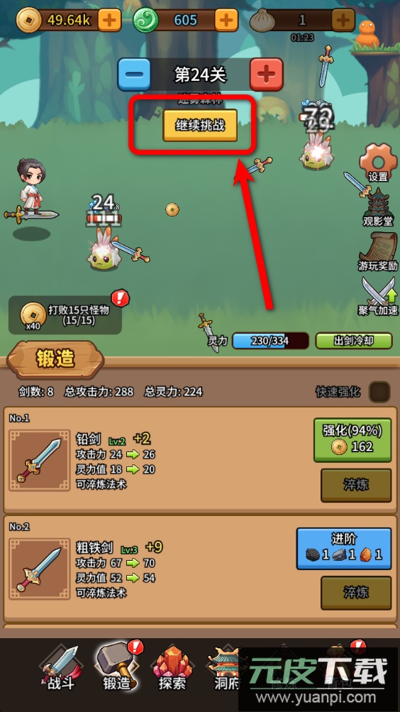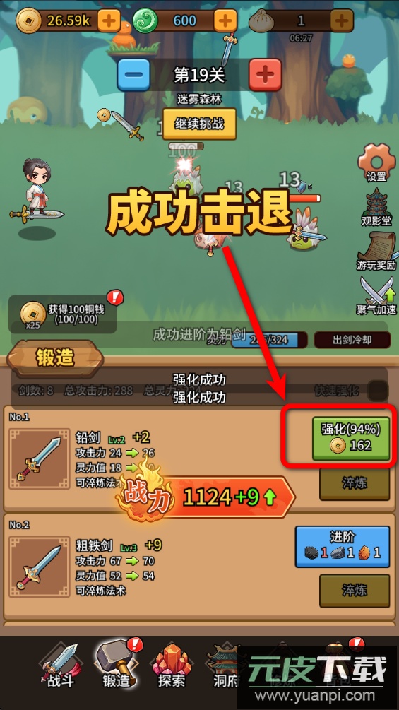 2、使用铜钱强化手中武器,能够直接提升攻击能力,让击败怪物的效率大幅增加。