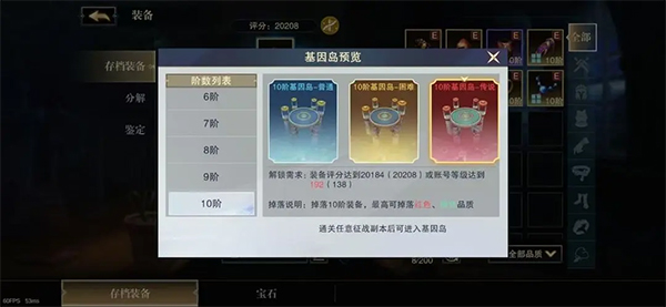 装备评分是进入基因岛的前提,也是获取存档装备的主要依据。玩家可通过鉴定高品质装备,反复挑战与自身战力匹配的基因岛层级,从而收集更多存档装备,实现战斗力的稳步增长。