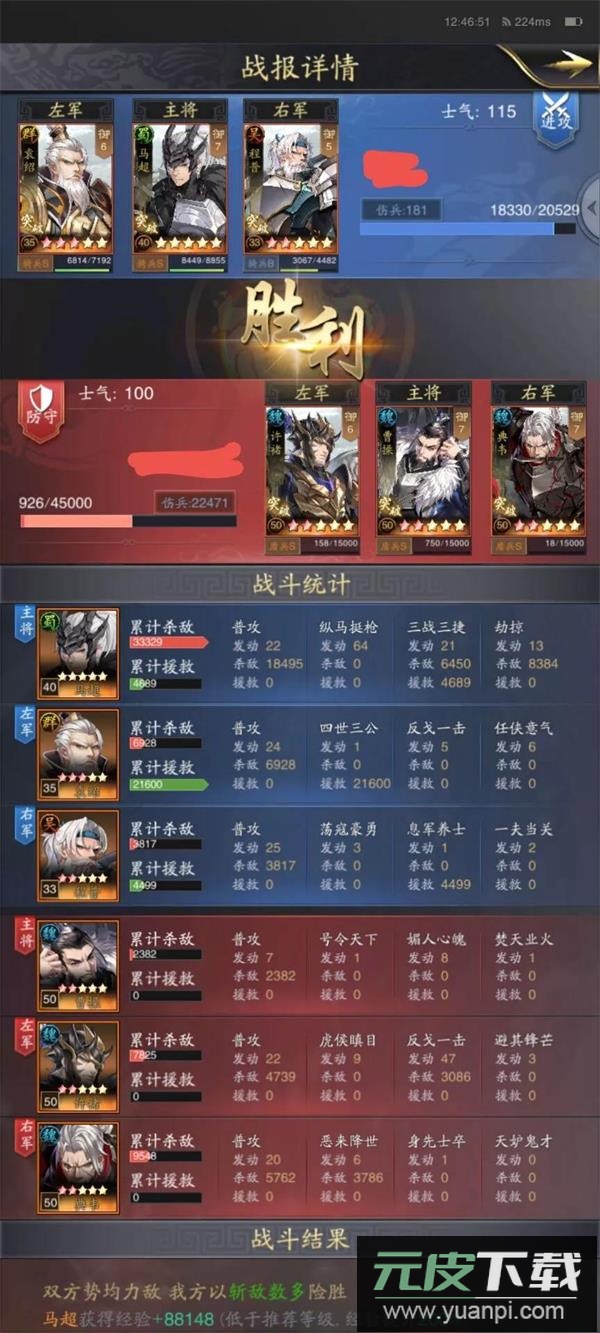 对阵魏盾队伍时,马超常能打出超过三万的伤害,袁绍的治疗量十分充足,程普提供的控制能有效限制敌方许褚、典韦的输出,通过持续消耗战胜对手。