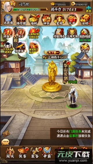 在游戏内,前往“门派”广场,便能看见一尊熠熠生辉的武者金像;点击它即可进入华山论剑的专属界面。