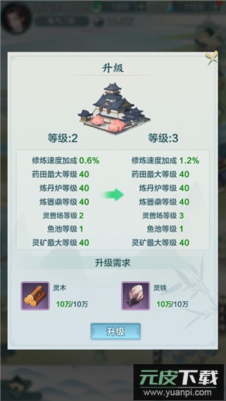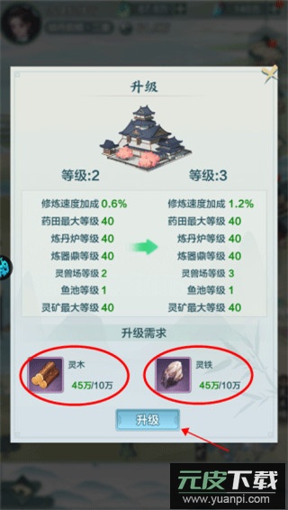 3、若材料与条件满足,即可点击升级按钮提升洞府等级。