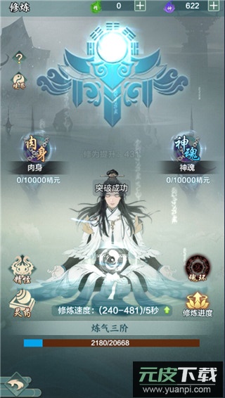 3、在洞府内进行修炼,可查看角色修炼进度,满值后即可突破境界;