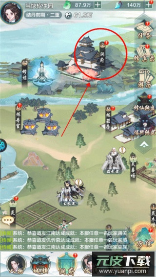 1、首先在游戏界面中找到洞府入口并点击进入;