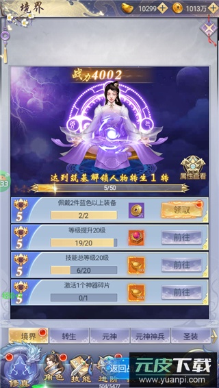 2、通过角色面板为人物穿戴装备,有效提升战斗能力;
