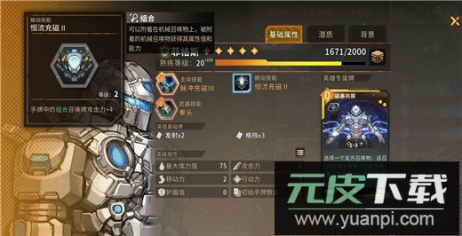 被动技能恒流充磁能提升手牌中组合牌的攻击力;组合牌的核心机制在于叠加伤害,而菲格斯能实现快速叠伤。