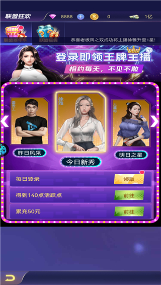 3、连续登录七天可获得稀有主播及多种豪华奖励;