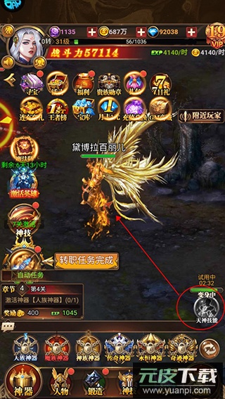 在关键时刻激活天神技能,可暂时获得大幅战力提升,助你克服强大的对手。