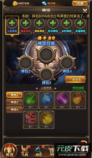3、神器技能掌握: