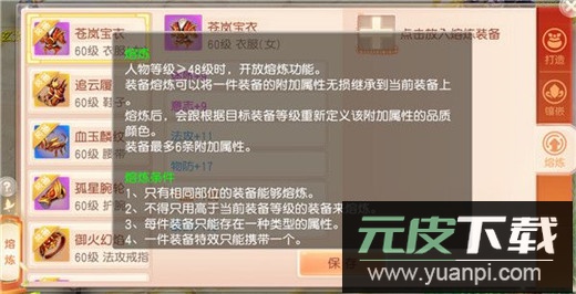 用于熔炼的装备等级不得低于当前装备等级;