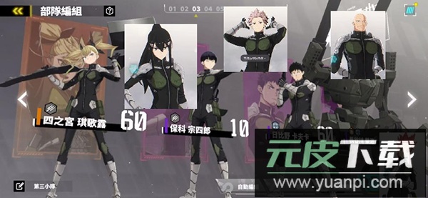 角色分工:市川莱诺作为主力,兼具单体与群体伤害能力;保科宗四郎提供暴击与增伤效果;亚白米娜作为高叠层辅助进一步强化输出;四之宫功负责治疗或护盾,保障队伍存活。
