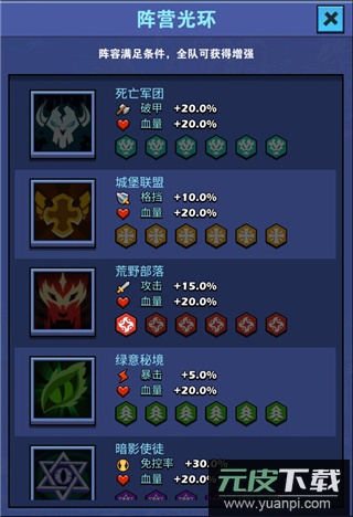 在队伍中编入特定阵营的超能英雄,可以激活专属的阵营光环;光环能为队伍全体英雄提供属性增益,从而有效提升整体战斗力。