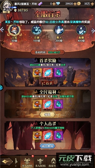 游戏的BOSS挑战玩法颇具趣味,数十只强大而邪恶的首领等待你的挑战,你可以选择独自应对,也可以与其他玩家组队共同作战。成功击败BOSS后能够获取丰富奖励。游戏特别设置了全服首杀机制,第一位击败特定BOSS的玩家将获得额外首杀奖励,这显著增强了玩家之间的竞争氛围。喜欢这类游戏的朋友不妨下载体验。