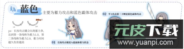 蓝色招式主要为蓄力攻击与霸体攻击;长按攻击键进入蓝霸体蓄力,蓄力越久伤害越高;部分武器平A第三下为蓝霸体,阔刀则为第二下。