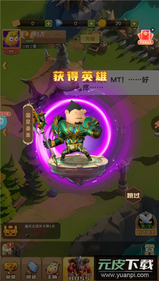 在这款回合制手游中,你将化身为一支小黄牛,展开充满趣味的冒险旅程。游戏采用精致的卡通风格,人物造型生动鲜明。你可以招募多位强力将领,组建最多四人的英雄小队。面对强大首领时需要精心搭配阵容,而日常打怪则能享受全自动战斗的便利。击败怪物后能收获丰富资源,助你不断成长。