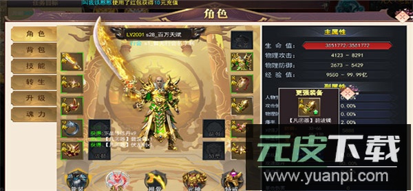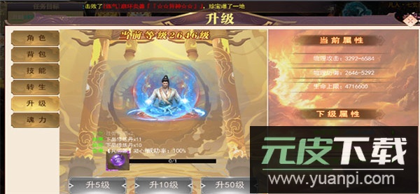 4、技能设置、升级与转生操作均在角色面板内完成,消耗材料即可培养角色,快速提升战力;