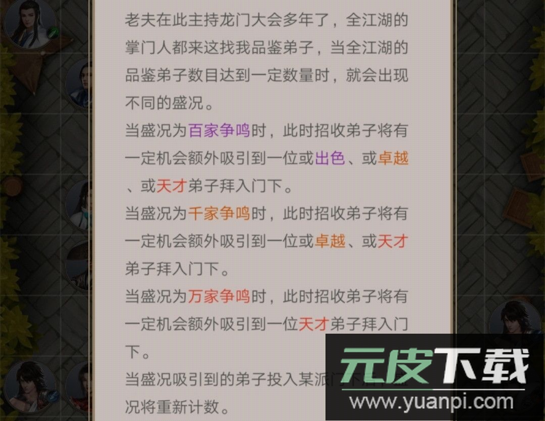 内门弟子主要用于处理总务大殿任务。注:弟子品质、武职及籍贯与任务完成效率紧密相关;注:建议尽可能集齐不同籍贯的弟子。