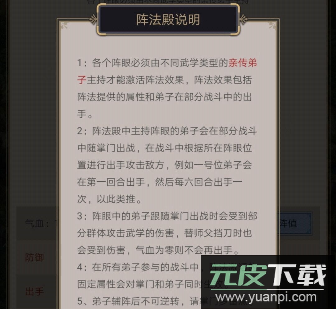 《弟子院》中,亲传弟子的作用包括:参与会武场、处理总务大殿任务、组成阵法。注:阵法需配置六种不同武职的弟子。