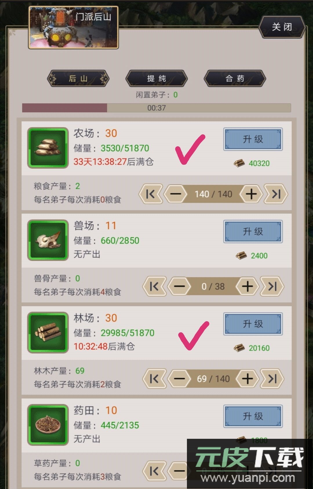 《门派后山》中,根骨普通的弟子建议优先安排至《农场》与《林场》。内力达到十七阶后,将开启外练系统,所需丹药可在此合成。