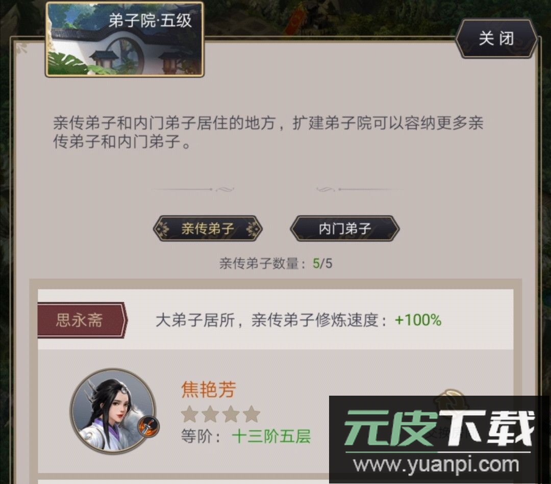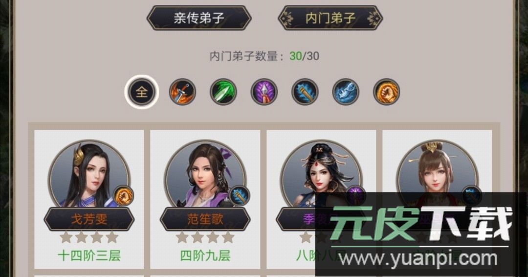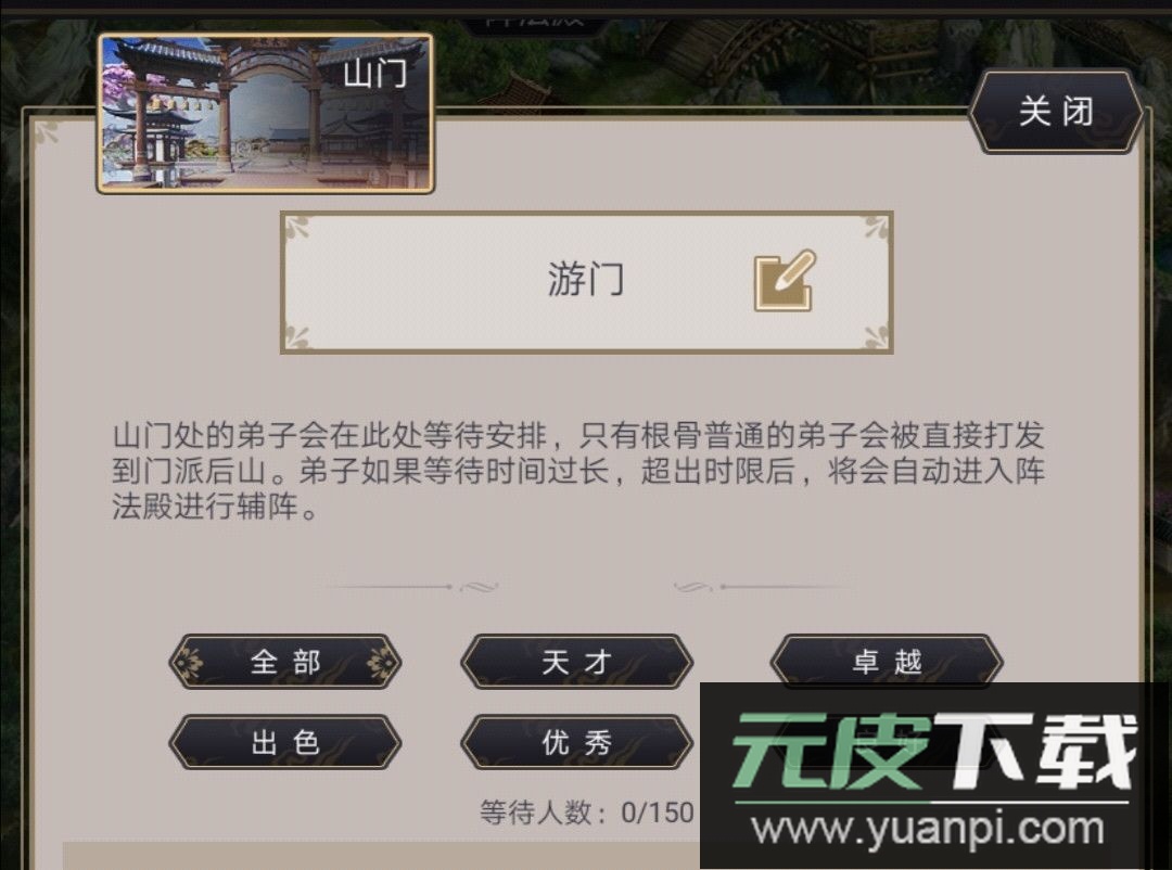 通过《开派大典》与《龙门大会》招收的弟子均会出现在《山门》,在此可安排亲传弟子、内门弟子及用于转化阵法值的弟子。