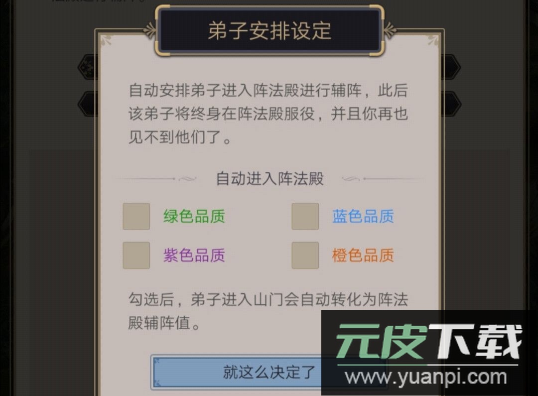 注:《弟子安排设定》请保持默认,切勿随意改动。