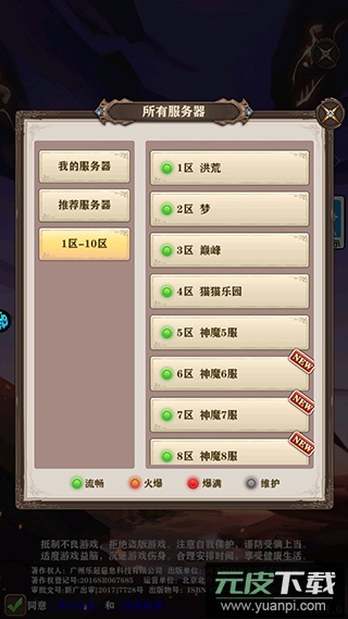 1.进入游戏后,首先挑选一个喜欢的服务器;