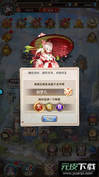 3.为你的神将队伍命名,并选定一个初始阵营;