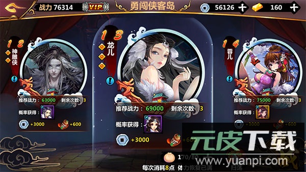 侠客岛设有不同首领的副本,击败首领会掉落对应侠客碎片。副本难度逐步提升,需要玩家不断提升战力才能挑战更高阶的侠客。