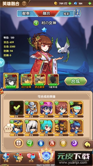 英雄融合界面清晰展示升星进程,可将多余英雄献祭转化为培养材料,并支持自定义英雄外观颜色。